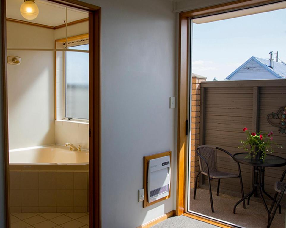 King size bed. Bathroom features large corner spa bath with a shower over. Smart TV 43", cooking facilities include microwave, electric frypan, ceramic cooktop with two hotplates and tea/coffee making facilities. Great range of teas and coffees including Tuatara plunger coffee. The spa studio units are on the ground floor room with a small private courtyard, situated at rear of property away from main road. Double glazed.