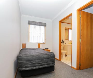 Spacious two level apartment style unit with two bathrooms - ideal for families. One bedroom downstairs with a queen size bed, downstairs bathroom has a shower and toilet. Upstairs bedroom has a queen bed and a single and there is another single bed on the landing area. Upstairs bathroom features a large corner spa bath with a shower over, toilet upstairs also. Full kitchen includes microwave, electric frypan, tea/coffee making and a free standing cooker. Lounge/dining area on ground floor has a 32" LCD TV